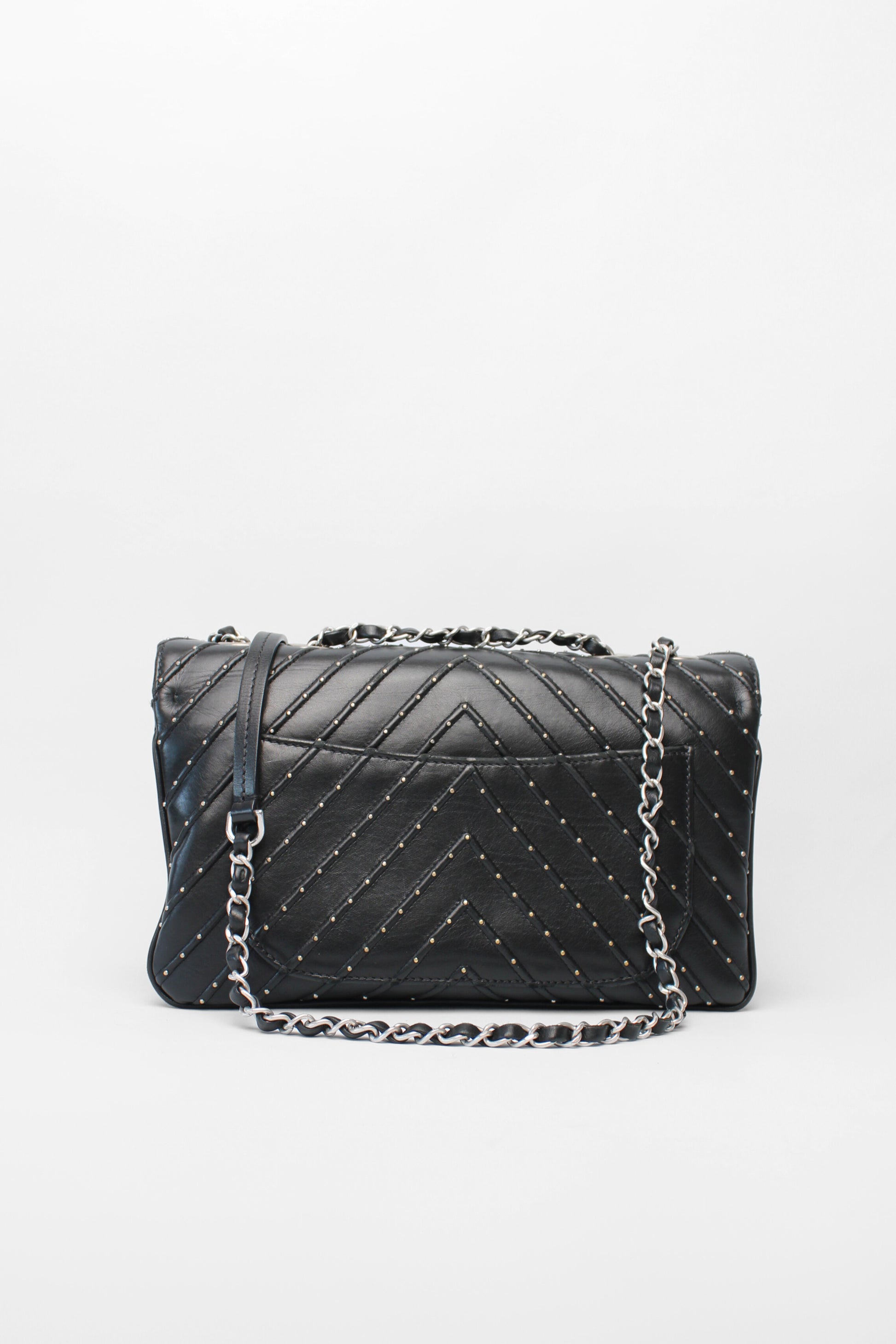 Chanel Black Chevron Stud Flap Bag with silver hardware /CC lock