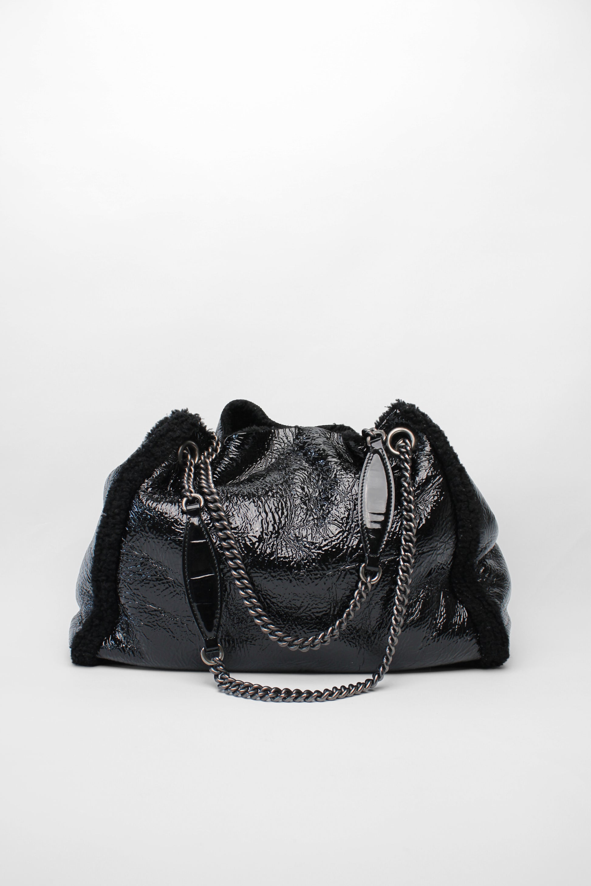 Gucci Black GG Patent Shearling Chain Bag