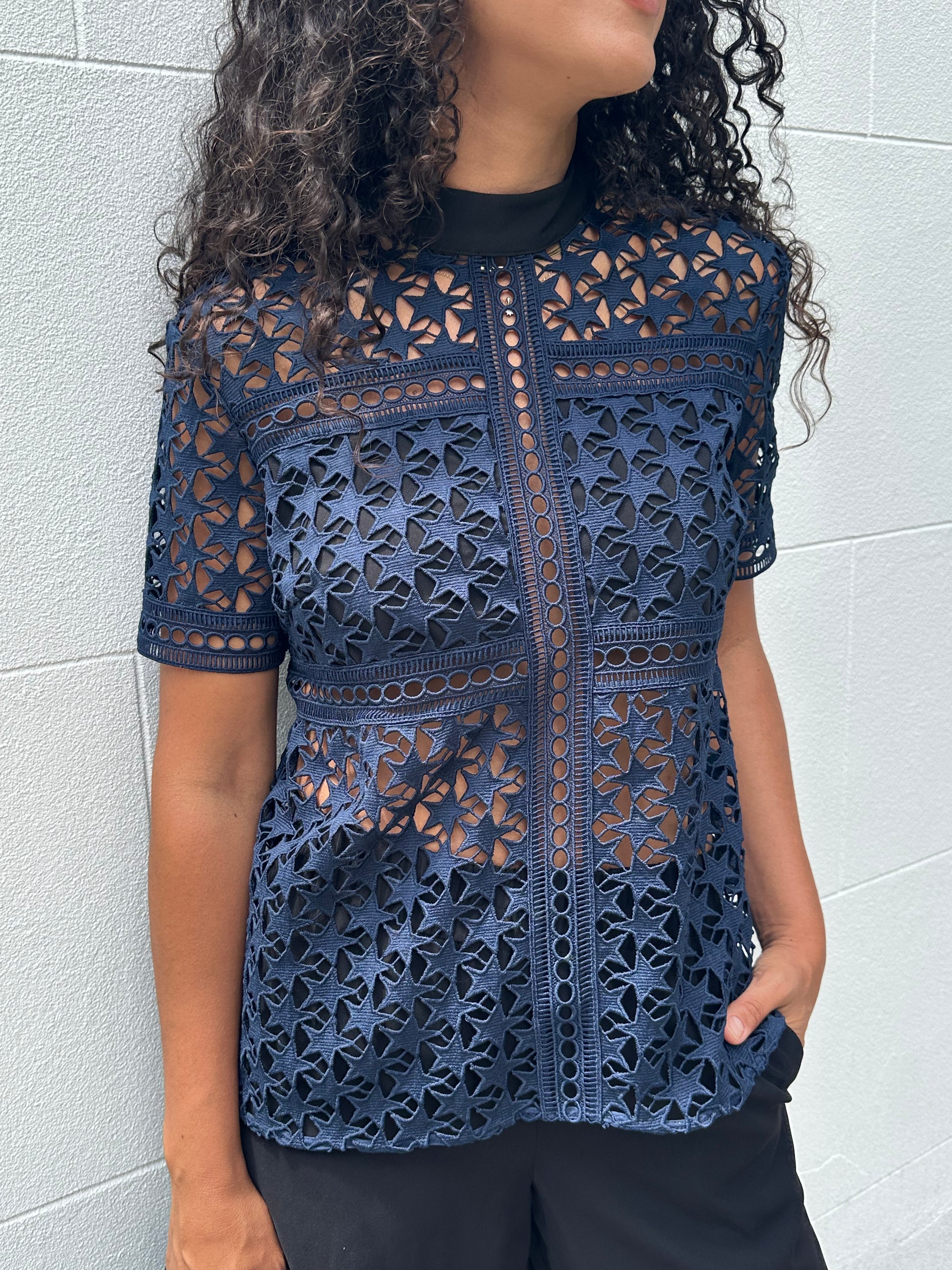 Self Portrait Navy Star Top Size 12